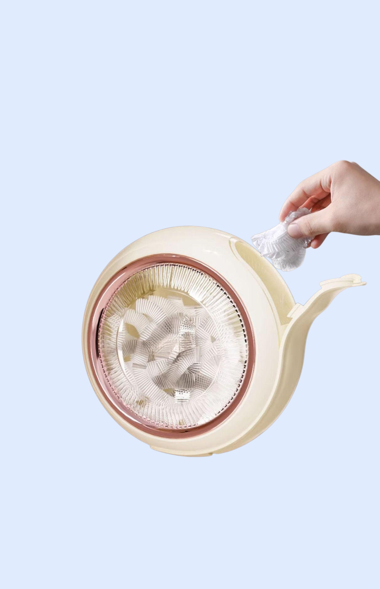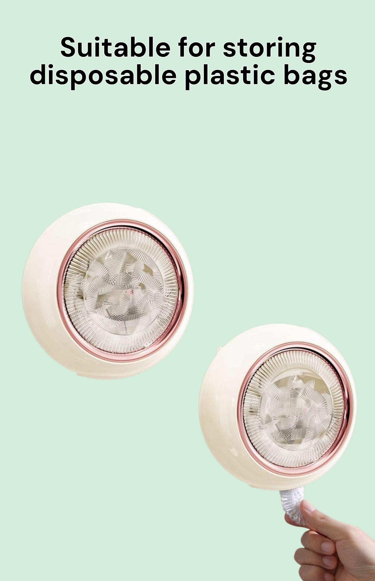 Removable plastic wrap storage box with suction cup for punch-free installation, suitable for storing disposable plastic bags, easy to mount and access, space-saving design.