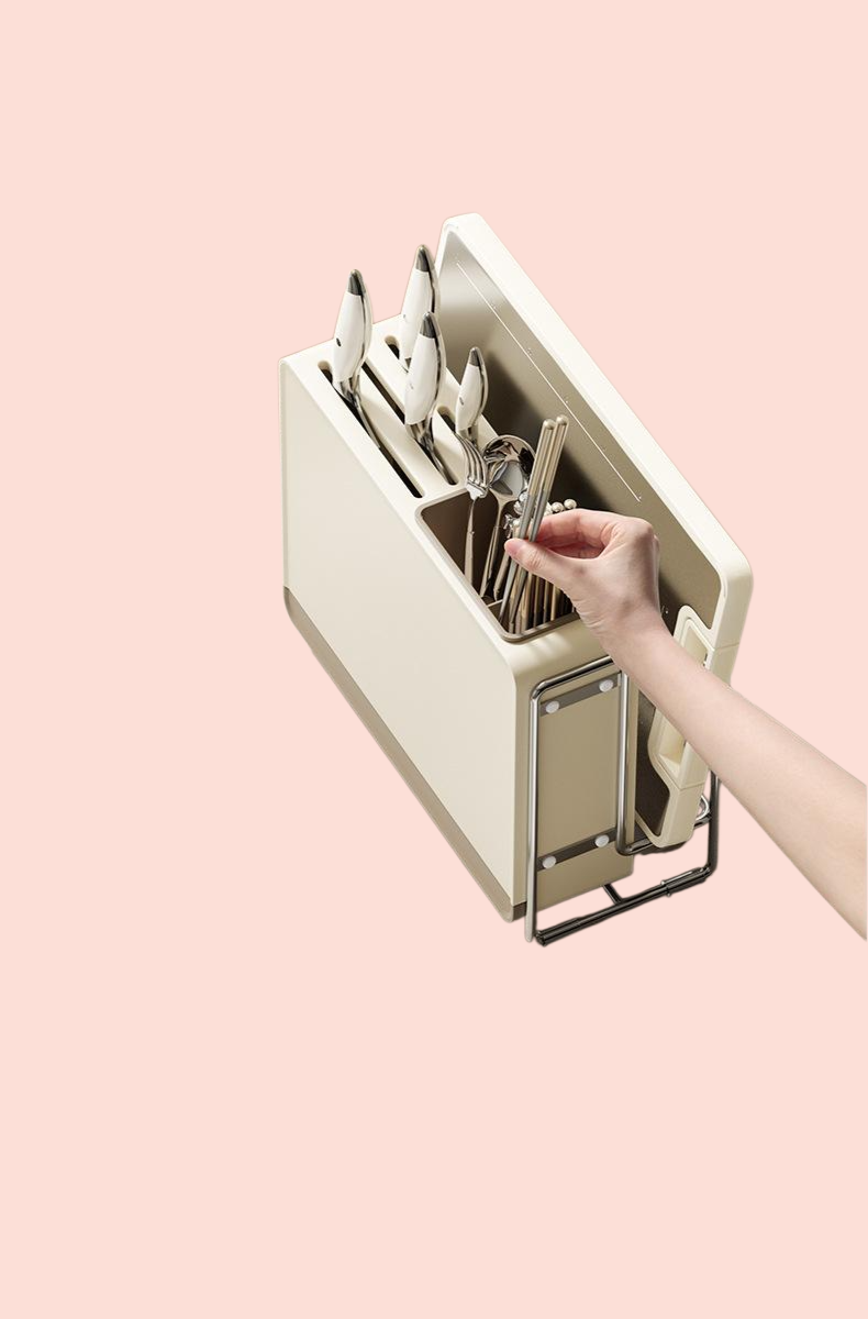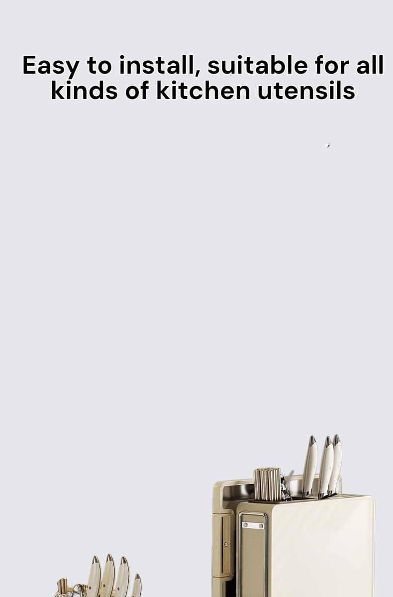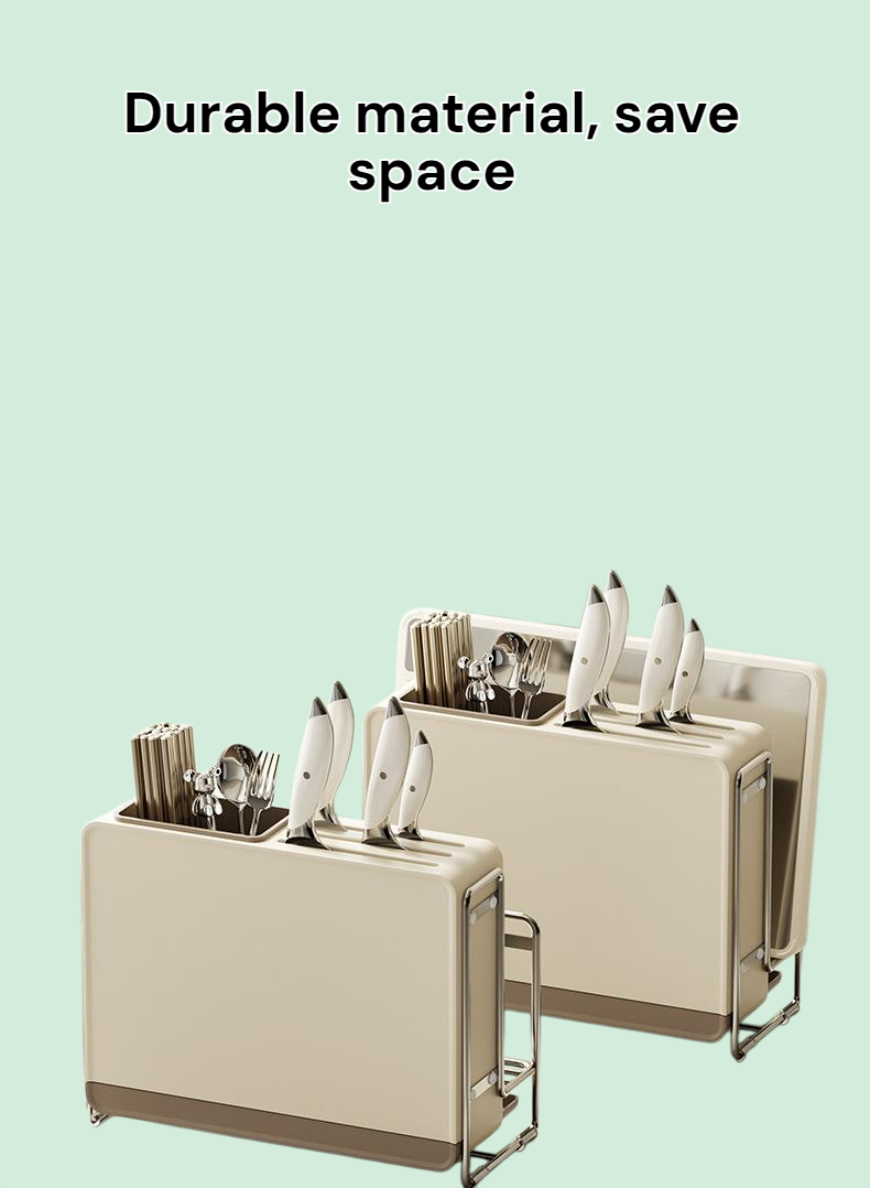Organize knives and cutting boards with a multifunctional kitchen rack. Durable material, space-saving design, easy installation, suitable for various kitchen tools.
